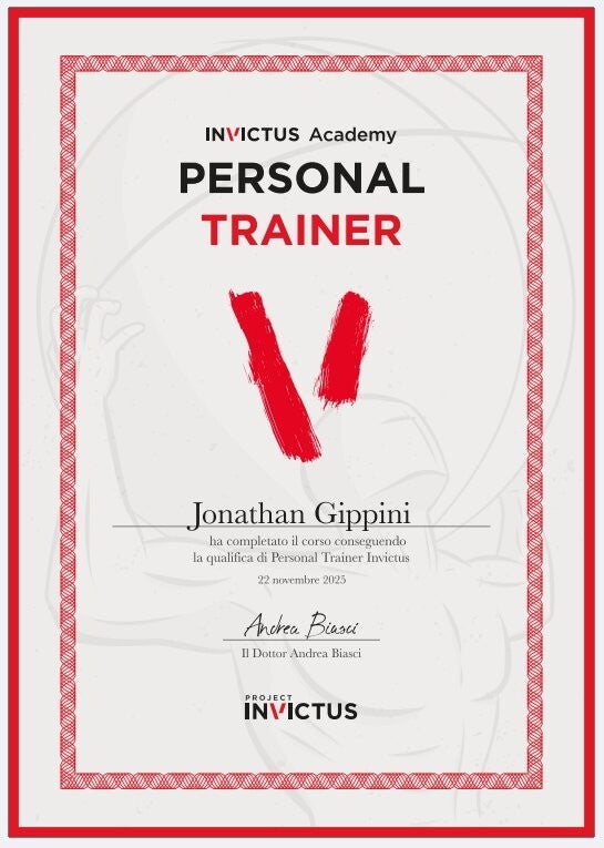 Partendo da zero, nel lontano 2014, mi sono allenato e appassionato al mondo della palestra per poi arrivare nel 2024 intraprendendo un corso di formazione come Personal Trainer inVictus dove ho conseguito l'attestato. Sono appassionato di ciò che faccio e sono entusiasta di condividere il mio sapere con te.